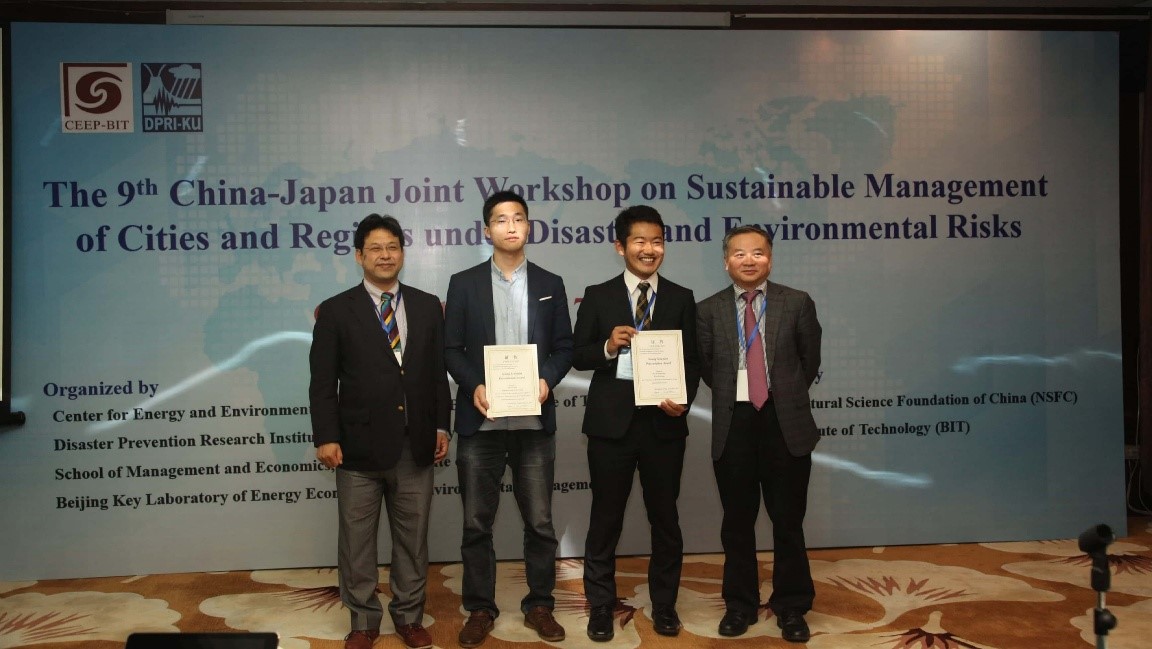 During this workshop, Ph. D. students of CEEP (Center for Energy and Environmental Policy Research, Beijing Institute of Technology) named Zhang Kun, Zhou Huiling, Kang Jianing and Chen Jingming were awarded “Young Scientist Presentation Award”, together with other 4 students from Kyoto University. Especially, Zhang Kun won the Gold prize, Zhou Huiling and Chen Jingming won the Silver prize, Kang Jianing won the prize of best presentation for poster.