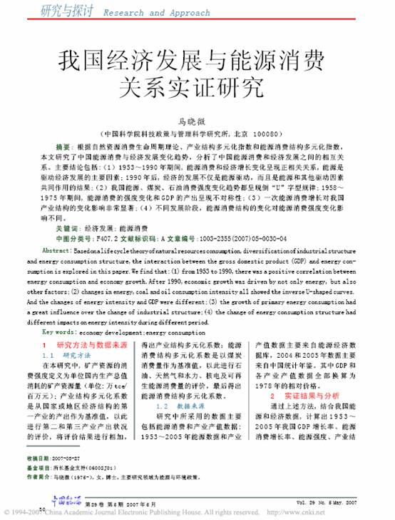 Research on Interaction between Economy Development and Energy Consumption in Our Country.X.-W Ma,2007.