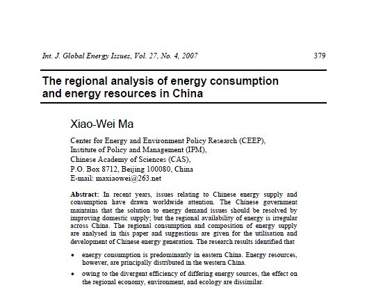 The regional analysis of energy consumption and energy resources in China.X.-W Ma,2007.