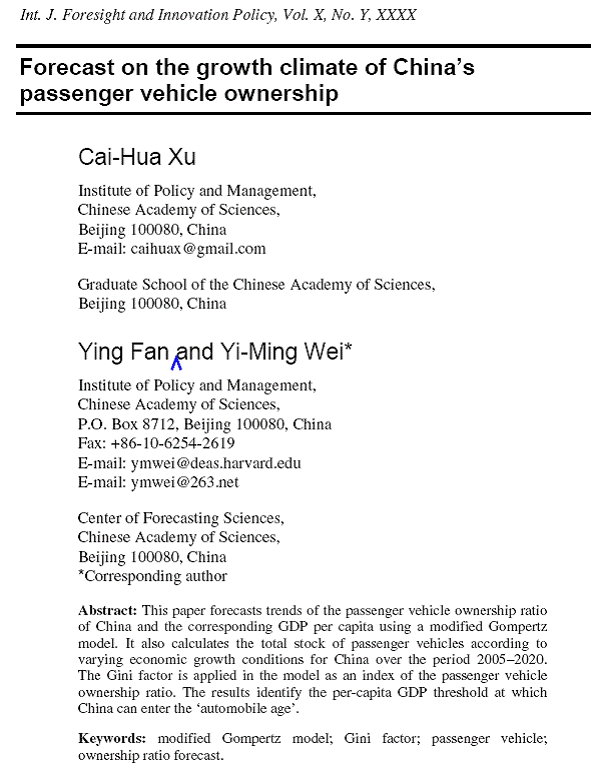 Forecast on The Growth Climate of Chinas Passenger Vehicle Ownership.C.-H. Xu, J.-P. Hu, Y.- Fan, Y.-M. Wei, 2008.