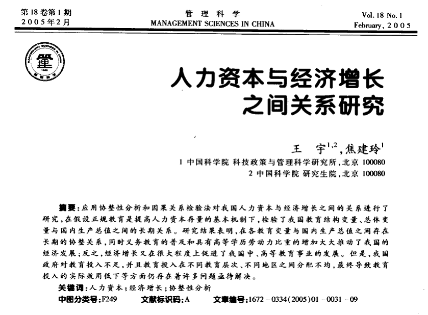 Study on the Relationship between Human Capital and Economic Growth in China.Y. Wang,J.-L. Jiao,2005.