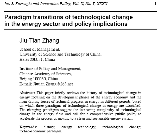 Paradigm transitions of technological change in the energy sector and policy implications.J.-T. Zhang.