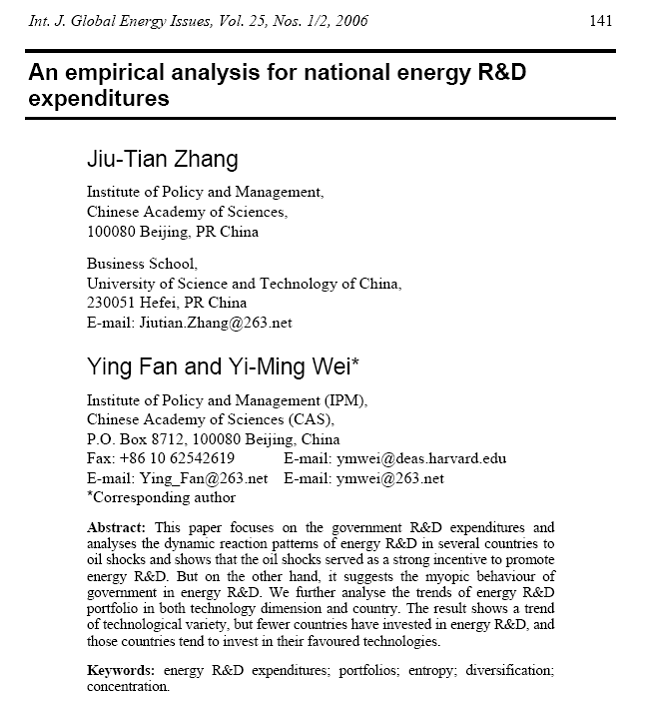 An empirical analysis for national energy R&D expenditures.J.-T. Zhang, Y. Fan, Y.-M. Wei,2006.