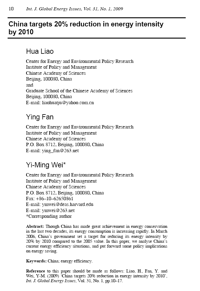 China targets 20% reduction in energy intensity by 2010,Int. J. H.Liao,Y.Fan,Y.-M Wei,2009.