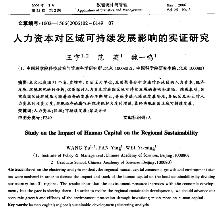 Study on the Impact of Human Capital on the Regional Sustainability.Y. Wang,Y. Fan,Y.-M. Wei,2006.