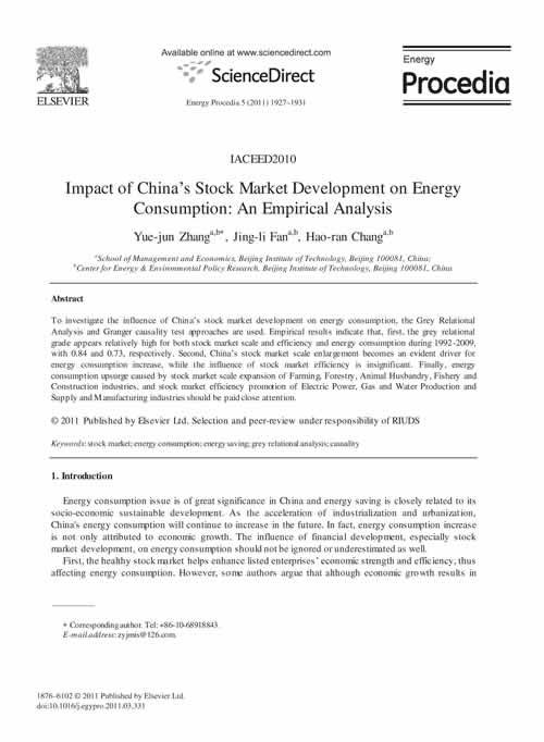 Impact of China's Stock Market Development on Energy, Y.-J Zhang,J.-L Fan,H.-R Chang,2011.
