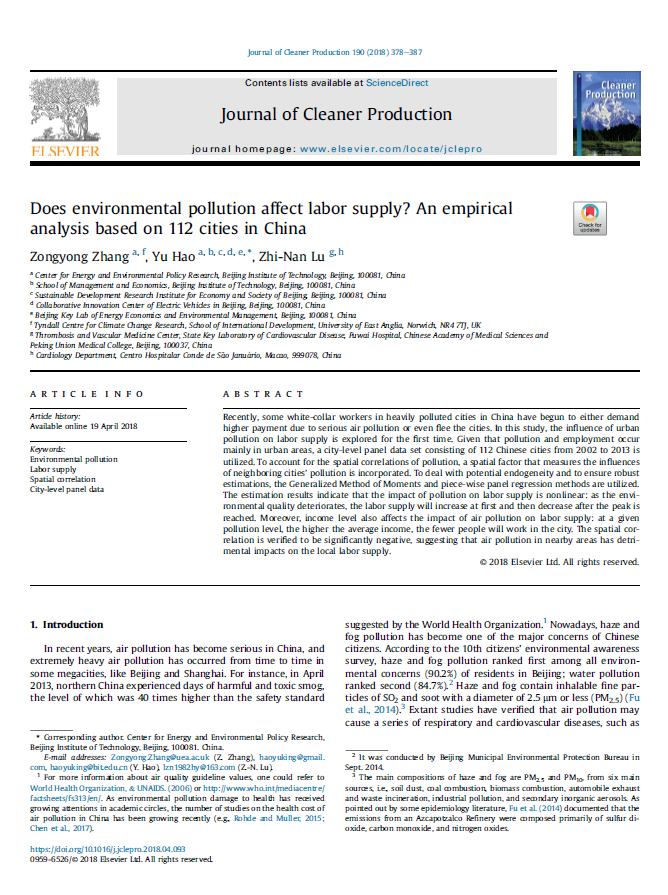 Does environmental pollution affect labor supply? An empirical analysis based on 112 cities in China