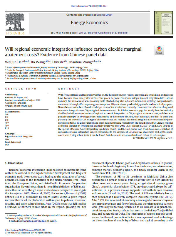 Will regional economic integration influence carbon dioxide marginal abatement costs? Evidence from Chinese panel data