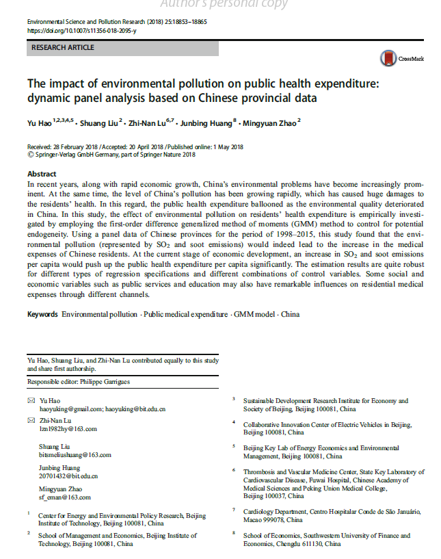 The impact of environmental pollution on public health expenditure:dynamic panel analysis based on Chinese provincial data