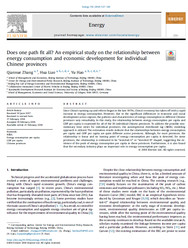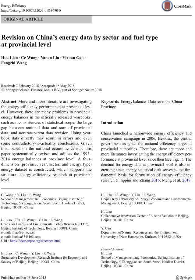 Revision on China’s energy data by sector and fuel type at provincial level. Liao H., Wang C., Liu Y.N., et.al., 2018