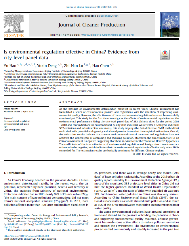 Is environmental regulation effective in China? Evidence from city-level panel data