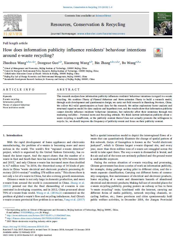 How does information publicity influence residents' behaviour intentions around e-waste recycling?