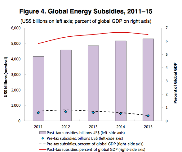 根据国际货币基金组织IMF刚刚发布的最新报告,2015年,全球各国政府提供的能源补贴累计达到5.3万亿美元(约合人民币33万亿元)。