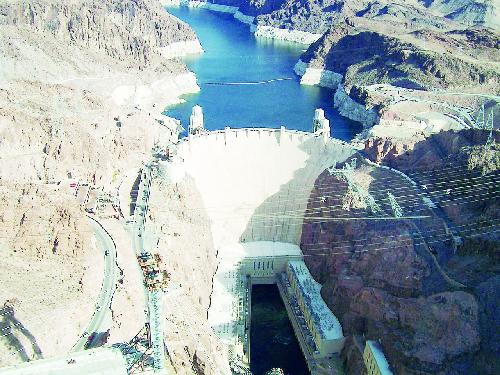 注:图为胡佛水坝,是美国综合开发科罗拉多河水资源的一项关键工程,位于内华达州和亚利桑那州交界之处的黑峡。
