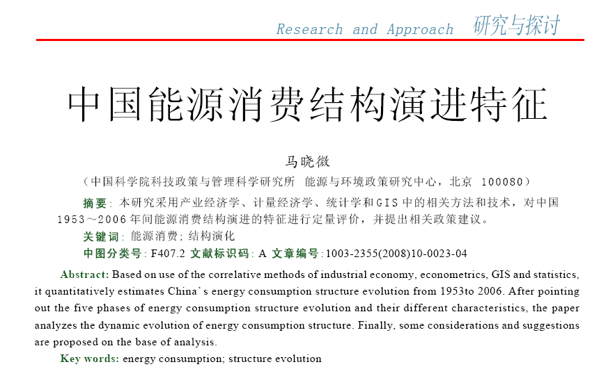 Characteristics of Energy Consumption Structure Evolution in China, X.-W Ma,2008.