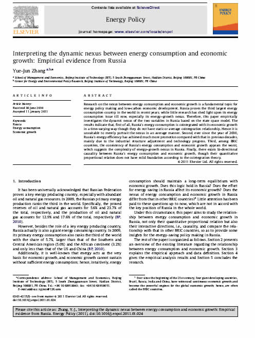 Interpreting the dynamic nexus between energy consumption and economic growth: Empirical evidence from Russia, Y.-J Zhang,2011.