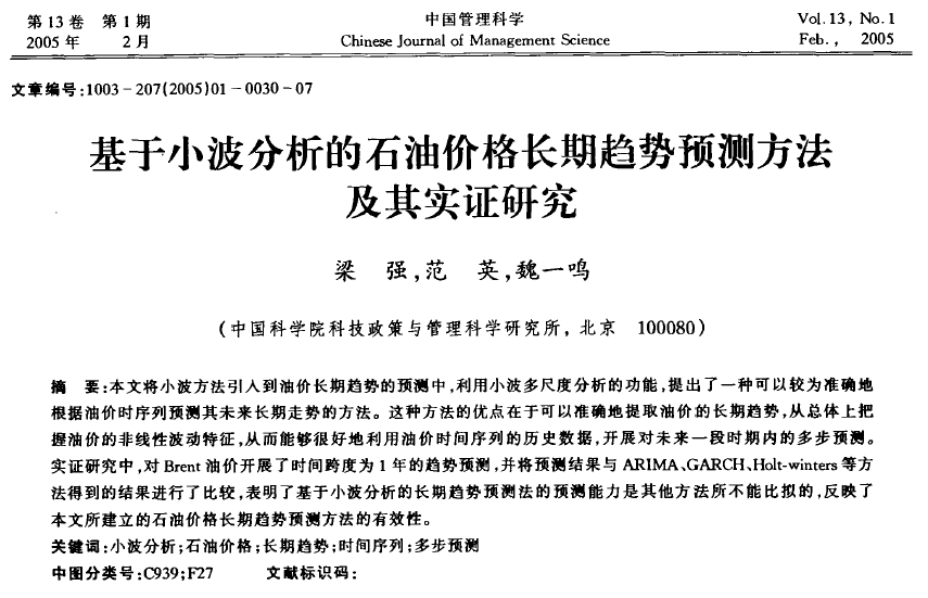 A Long-Term Trend Forecasting Approach for Oil Price Based on Wavelet Analysis. Q. Liang,Y. Fan,Y.-M. Wei,2005.