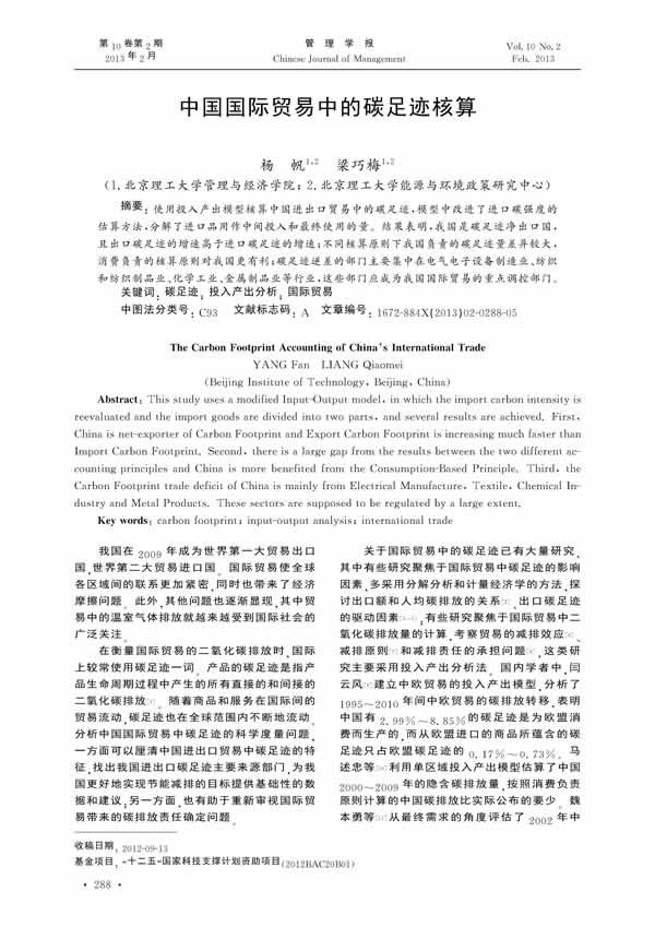 中国国际贸易中的碳足迹核算.杨帆, 梁巧梅. 2013.